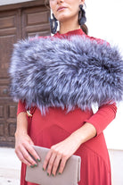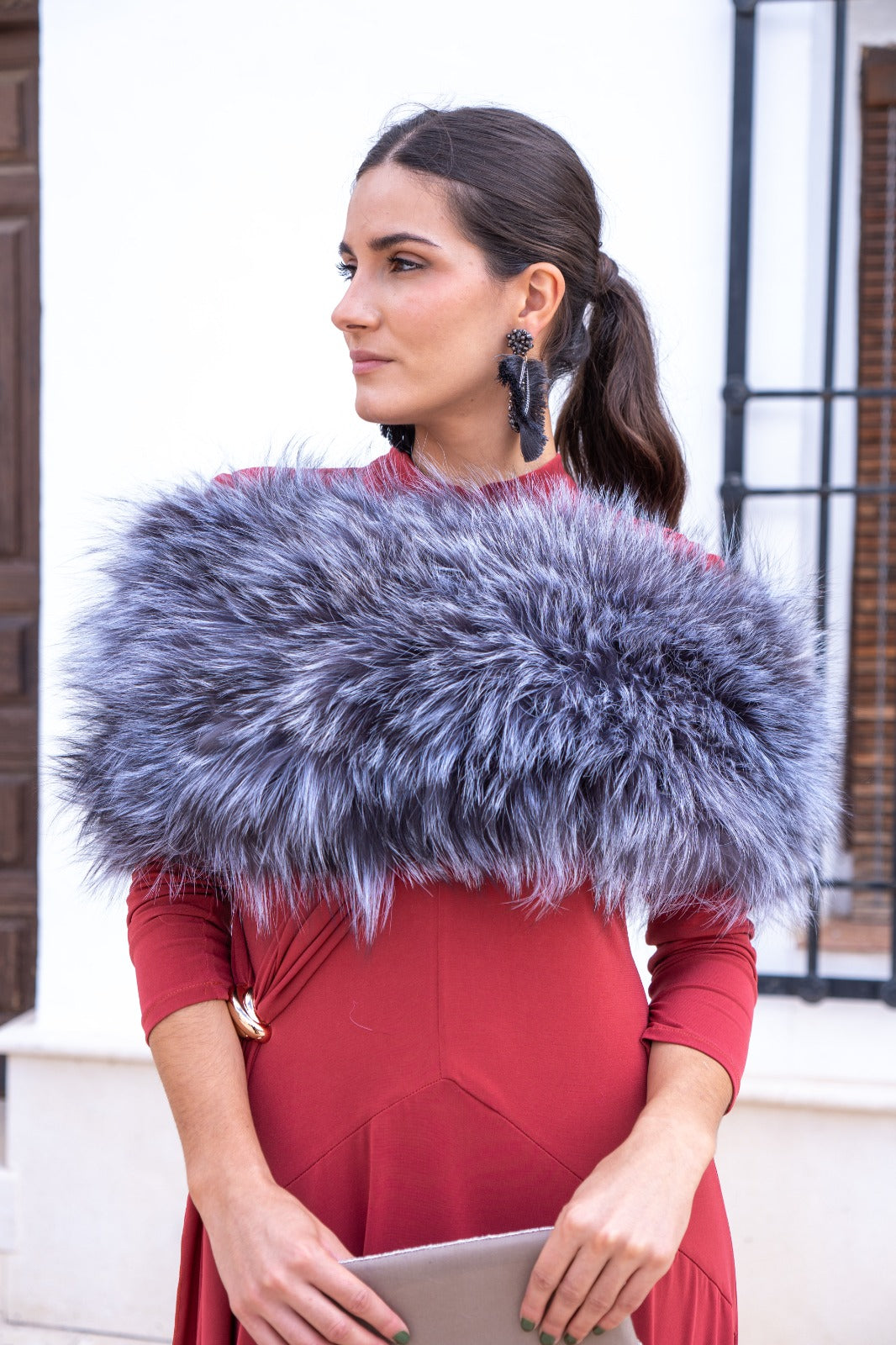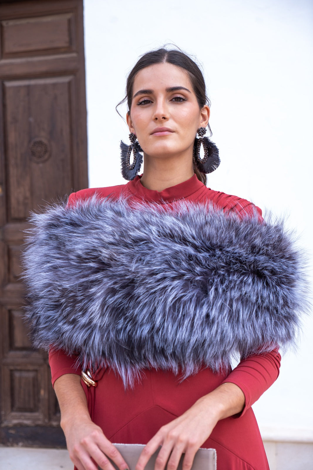 Natural fur stole, round, elastic, to cover the arms. In gray.