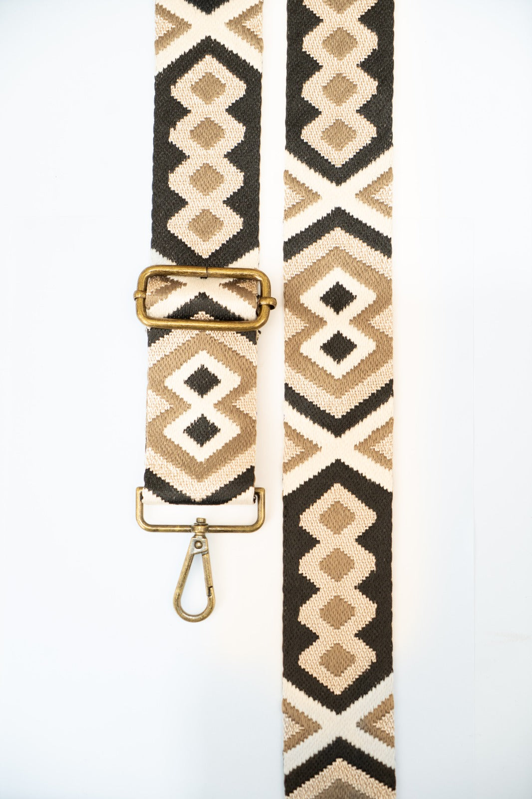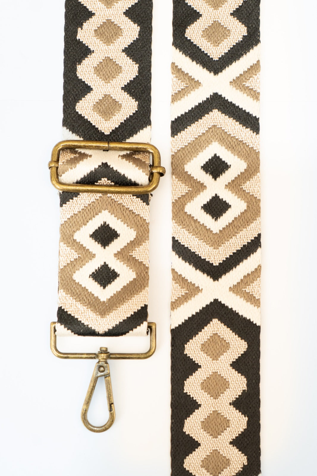 Woven ethnic crossbody bag with various beige and brown prints. Matches the Cies and Cotal bags.