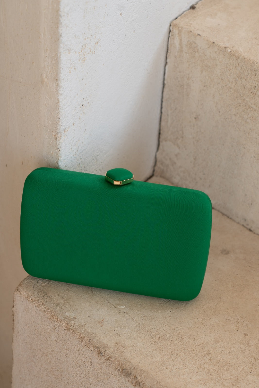 Hard wallet with gold magnetic closure and chain for hanging. In cotal color.