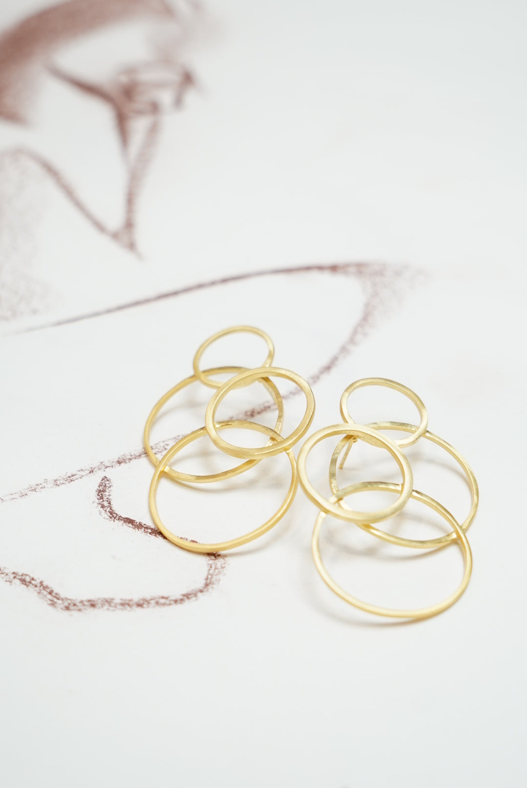Gold earrings made up of several circles. Handcrafted earrings.