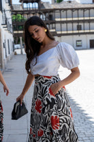 Wrap top, knotted, short-sleeved with elastic. Beige, linen-like.