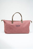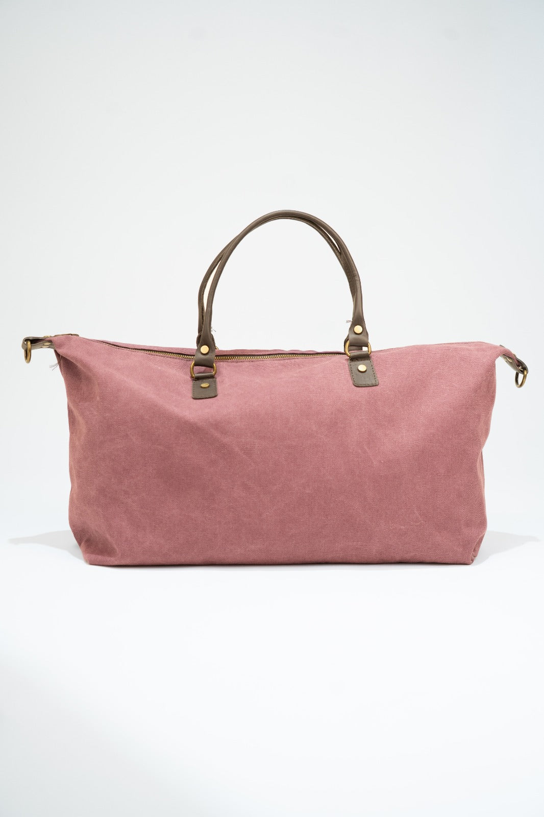 Bolso, maleta en loneta, con asas fijas en piel y correa extraíble y ajustable de algodón en color marrón chocolate. Cierre con cremallera, forro interior en negro y bolsillo interior. En color berenjena.