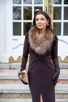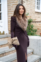 Estola en pelo natural, enganche al final del cuello para sujeción, en color camel.